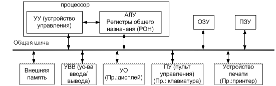 - устройство вывода результатов обработки информации.