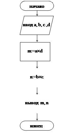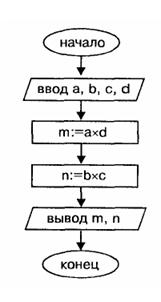 Исходными данными являются четыре целые величины: а, b, с, d. Результат - два целых числа m и n.