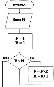 Решение. Задача решается c помощью циклического алгоритма. Составим два варианта алгоритма: цикла с параметром и с применением цикла с предусловием.