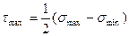 Максимальные касательные напряжения при сложном напряженном состоянии равны