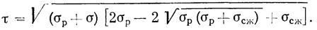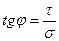 Наиболее просто аналитическая зависимость предельных касательных напряжений τ от нормальных σн изображается прямой линией (см. рис. 25):