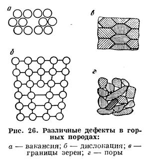 Для горных пород наибольшее значение имеют поверхностные и линейные дефекты, обуславливающие их прочность.