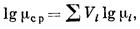 Магнитная проницаемость горной породы (для статистической смеси минералов) может быть определена по формуле логарифмического средневзвешенного
