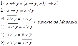 Важнейшие равносильности алгебры логики можно разбить на 3 группы: