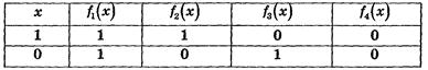 Из этой таблицы следует, что две функции одной переменной будут постоянными: f1(x) º 1. f4(x) º0, а f2(х) º x. и fз(х) º