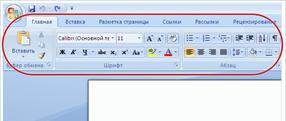 Содержимое каждой вкладки было тщательно продумано на основе опыта работы пользователей. Например, вкладка Главная содержит те команды, которые используются чаще всего, команды группы Шрифт для изменения шрифта текста: Шрифт, Размер, Полужирный, Курсив и др.