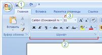 | 2. Группы. На каждой вкладке имеется несколько групп, которые отображают связанные общим назначением команды. 3. Команды. Команда - это кнопка, поле для ввода информации или меню. | ||