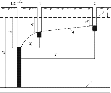 ЦС – центральная скважина; 1 – наблюдательная скважина №1;