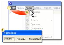 Диалоговое окно Настройка - это место начала всех настроек меню и панелей инструментов. Его можно открыть из меню Сервис (команда Настройка), меню Вид (подменю Панели инструментов) или с помощью кнопки Параметры панелей инструментов.