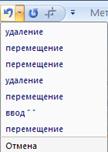 | Для отмены последнего действия можно нажать клавишиCtrl+z или воспользоваться кнопкой , стандартной панели инструментов. При необходимости отменить или вернуть сразу несколько изменений можно воспользоваться списками отмены, для чего щёлкнуть