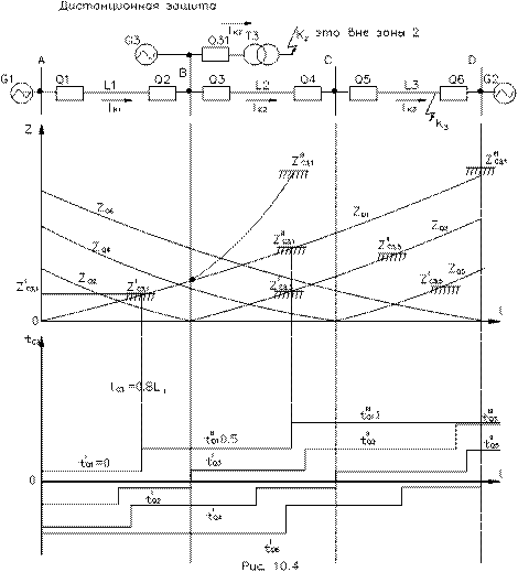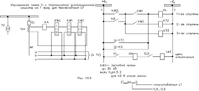 Упрощенная схема 3-х ступенчатой дистанционной защиты на одну фазу для выключателя Q1 приведена на рис. 10.5.