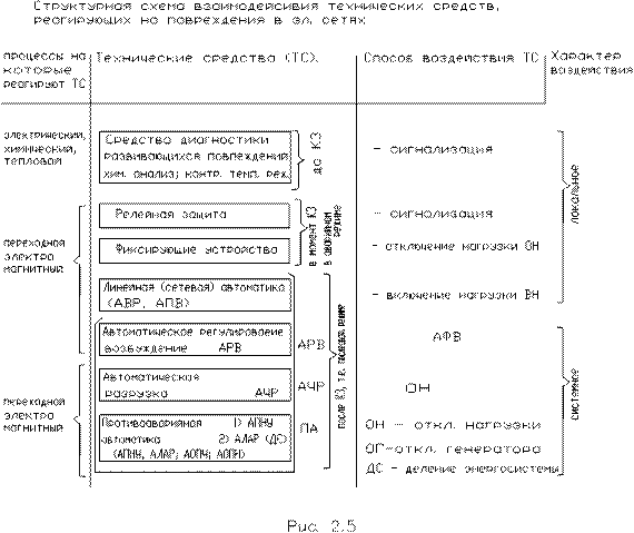 Структурная схема взаимодействия технических средств, реагирующих на повреждения в электрических сетях, показана на рис. 2.5.