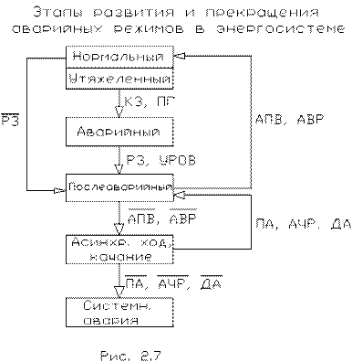 На рис. 2.7 приведены этапы развития и прекращения аварийных режимов в энергосистеме.
