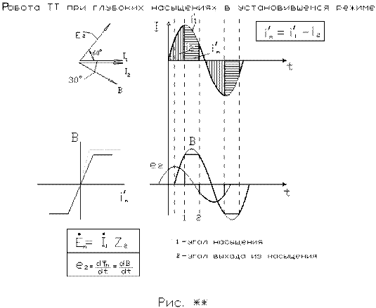 Работу ТТ при глубоких насыщениях в установившемся режиме необходимо исследовать, поскольку для простейших защит: МТЗ и ТО ток срабатывания защиты выбирается исходя из токов КЗ в конце зоны действия, а при близких КЗ они не должны отказывать. Казалось бы, чем больше