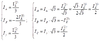 Токи в подводящих проводах со стороны треугольника Ia, Ib, Ig для рассматриваемого случая построены с учетом того, что коэффициент трансформации линейных напряжений принят равным 1. Токи со стороны звезды IA, IB, IC можно получить из приведенных соотношений.