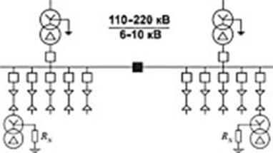 Рис. 3. Схема двухтрансформаторной подстанции с нейтралью, заземленной через резистор.