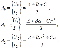 – оператор поворота и особую фазу, относительно которой выполняется разложение исходной системы в7екторов на симметричные составляющие. В случае особой фазы А получим: