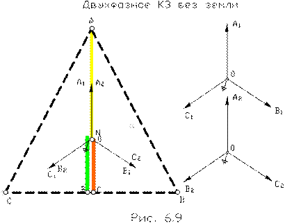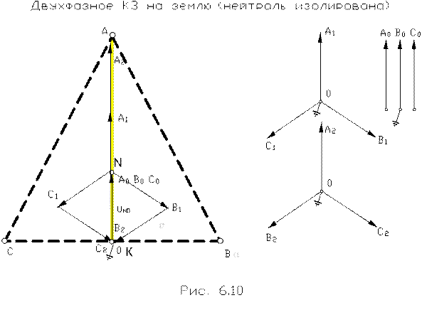 Диаграммы, иллюстрирующие двухфазные КЗ, приведены на рис. 6.9 и 6.10.