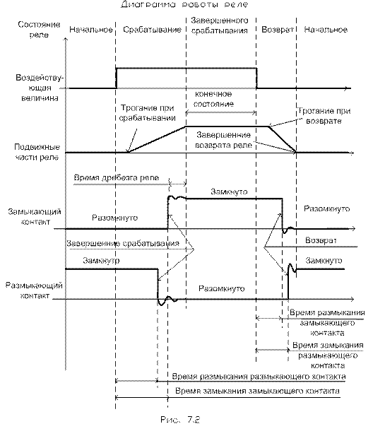 Диаграмма работы реле приведена на рис.7.2. Некоторые условные обозначения реле на схемах показаны на рис.7.3.