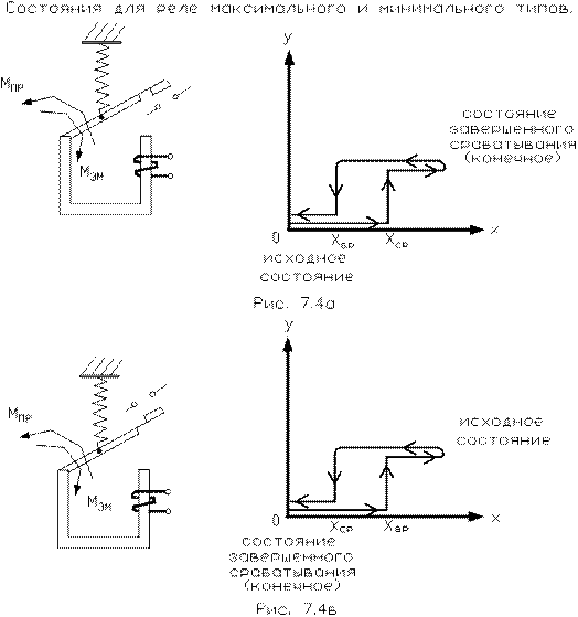 На рис.7.4 показаны состояния для реле максимального и минимального типов.