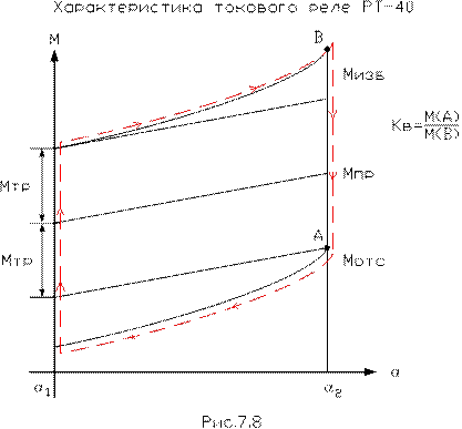Токовое реле РТ 40 и его характеристики приведены на рис.7.8.