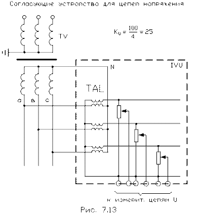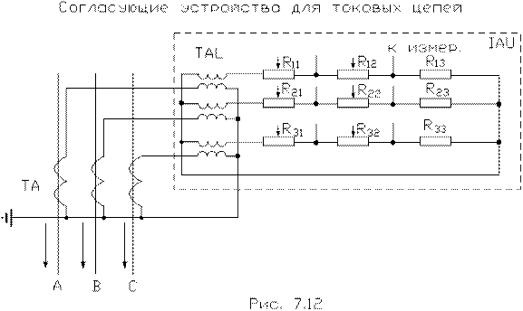 Согласующие устройства для токовых цепей и цепей напряжения показаны на рис.7.12 – 7.13.