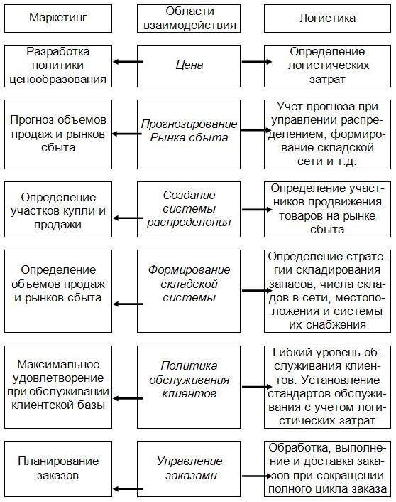 Рис. 8.2 Области взаимодействия маркетинга и логистики