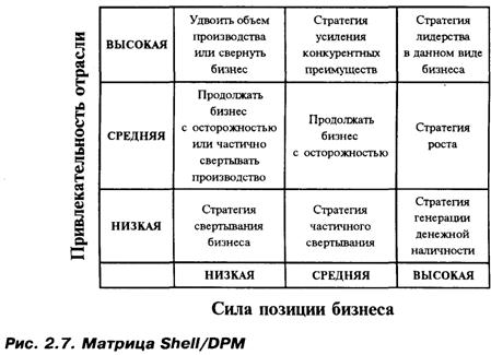 Несмотря на видимые преимущества модели Shell/DPM как матрицы многопараметрического стратегического анализа, ее популярность оказалась ограниченной рамками ряда очень капиталоемких отраслей промышленности, таких, как химическая, нефтеперерабатывающая, металлургическая.