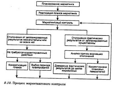 Маркетинговый контроль. Деятельность каждой фирмы направлена на достижение желаемых ею конечных результатов. Как уже сказано, достижение этих результатов может быть обеспечено благодаря реализации плана маркетинга, согласно которому следует выполнить определенный комплекс мероприятий, обусловленных целью деятельности фирмы. На практике реализация таких мероприятий не всегда оказывается заранее предсказуемой. Поэтому необходимо постоянно учитывать фактическое состояние дел и проводить корректировку запланированных мероприятий. Для этого целесообразно осуществлять маркетинговый контроль.