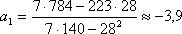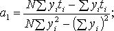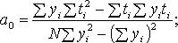производится по формулам, полученных на основе метода наименьших квадратов: