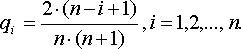 Значения весовых коэффициентов для определения комбинированных оценок вероятностей каждого интервала находим по формулам: