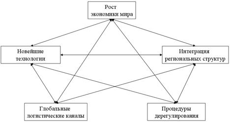 Движущие силы глобализации. По мнению Д. Бауэрсокса и Д. Клосса — ведущих западных специалистов в области логистического менеджмента, основными движущими силами его современной глобализации являются: