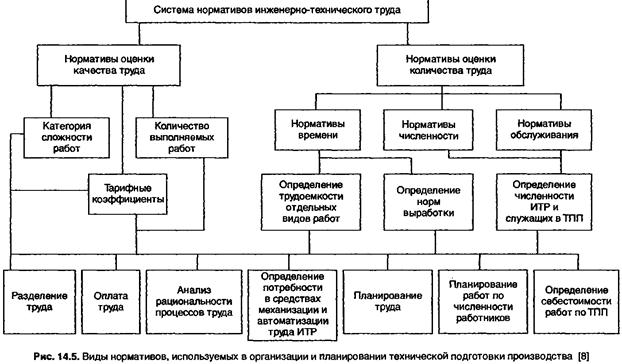 Система нормативов и их использование в организации и планировании технической подготовки производства представлена на рис. 14.5.