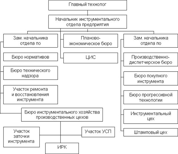 Структура органов управления инструментальным хозяйством зависит от размера предприятия, типа производства и общего количества работающих.