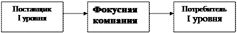 Максимальная цепь поставок состоит из фокусной компании и всех ее контрагентов слева (вплоть до поставщиков исходного сырья и природных ресурсов), определяющих ресурсы фокусной компании – на «входе», и сети распределения справа – вплоть до конечных(индивидуальных) потребителей, а также логистических и прочих посредников.