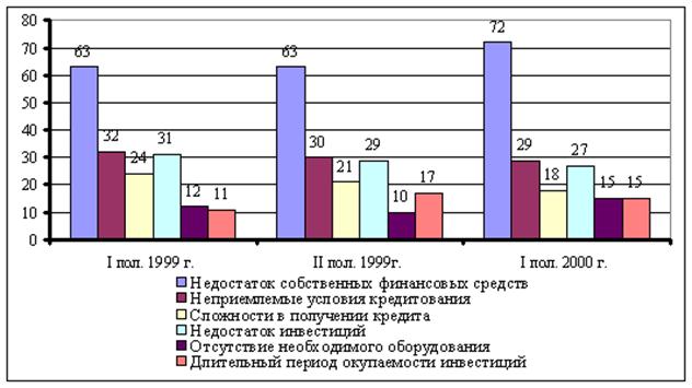 Рис. 3. Факторы, сдерживающие инновационную деятельность на промышленных предприятиях (в % от общего числа обследованных предприятий)