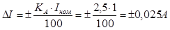 Амперметр: номинальный ток Iном=1А, класс точности KА=2,5.