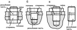 Резьбовые соединения - самый распространенный вид разъемных соединений. Они осуществляются болтами, винтами, шпильками, гайками и другими деталями, снабженными резьбой (рис.3.3).