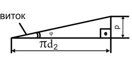 Развертка витка резьбы на плоскость по среднему диаметру представляет собой прямоугольный треугольник с катетами