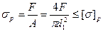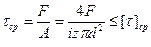 При действии продольной силы F условие прочности на растяжение стержня в сечениях, ослабленных нарезкой, имеет вид