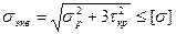 В этом случае условие прочности по эквивалентному напряжению в соответствии по теории энергии формообразования равно