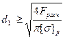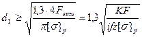 Расчетный внутренний диаметр резьбы с учетом скручивания стержня болта при затяжке соединения найдется в соответствии с формулой (3.18)