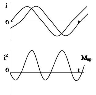 При анализе работы прибора в условиях переменного тока необходимо учитывать закон изменения токов во времени. На Рис. 4.7 показано построение графика мгновенных значений вращающего момента при синусоидальном законе изменения токов