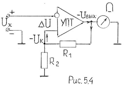 Принцип действия электронного вольтметра (Рис.5.3) основан на автоматическом уравновешивании измеряемого напряжении Ux с компенсационным напряжении Uk. В результате на входе усилителя постоянного тока оказывается приложено напряжение