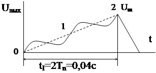 На рис 8.7 показана временная диаграмма напряжения Uвых с помехой при интегрировании за время tI равным двум периодам помехи (tI = 2 Tn = 0,04 c).