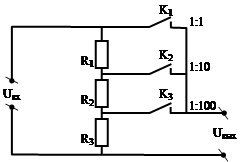 Основным показателем делителя является коэффициент передачи К, представляющий отношение выходного Uвых напряжения делителя к входному Ux