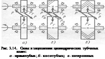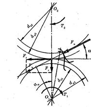 Рис.3.15. Силы, девствующие в прямозубом зацеплении