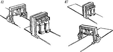 Рис. 6.1. Схема автоматической мойки автомобиля (а) и варианты совместного расположения моечной и сушильной установок соответственно последовательного (6) и под углом (в)