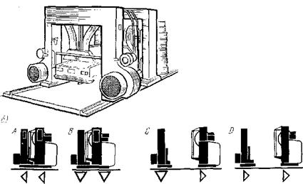 Установка выполняет операции мойки и сушки автомобиля за рабочий цикл (состоящий из хода вперед и хода назад) в течение 10—12 мин. Последовательность этого процесса следующая. При ходе вперед (поз. А и В, рис. 6.2,6) моечная и сушильная установки электрически соединены между собой и перемещаются одна за другой. Вентиляторы сушильной установки при этом не работают. Моечная установка осуществляет предварительную мойку автомобиля с применением моющих средств. В конце хода вперед моечная и сушильная установки останавливаются одновременно (поз. В).