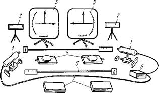 Оптические стенды в последнее время в мировой практике все чаще монтируют на четырехстоечных подъемниках. В СССР на СТОА для этих целей применяют четырехстоечный подъемник СДД-2,5 и оптический прибор ПКО-1 (рис. 4.10). Использование подъемника упрощает процесс диагностирования, делает его более удобным и дает возможность (особенно при наличии домкратов) выполнять необходимые регулировочные работы,